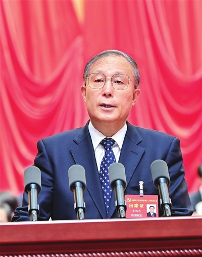 李鸿忠代表中共天津市第十一届委员会向大会作报告。
